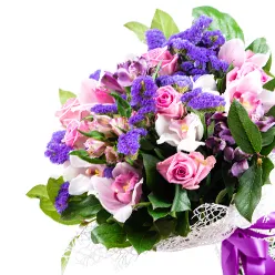 Букет из розовых роз и альстромерийНежная любовь