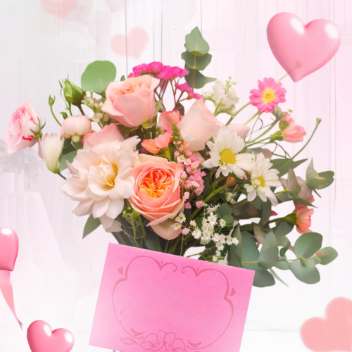 Вариант—Стандарт - роза - 5 шт., альстромерия - 5 шт., зелень, упаковка, лента