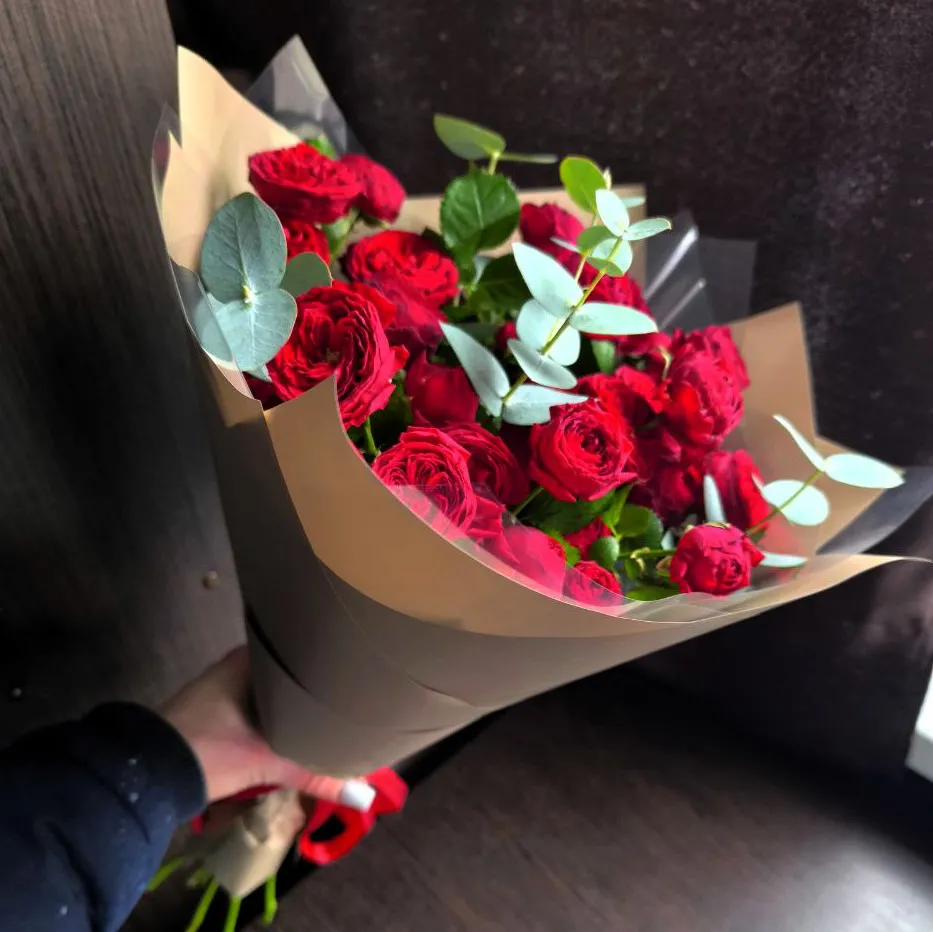 Букет из красных пионовидных роз – это воплощение романтики и глубоких чувств.