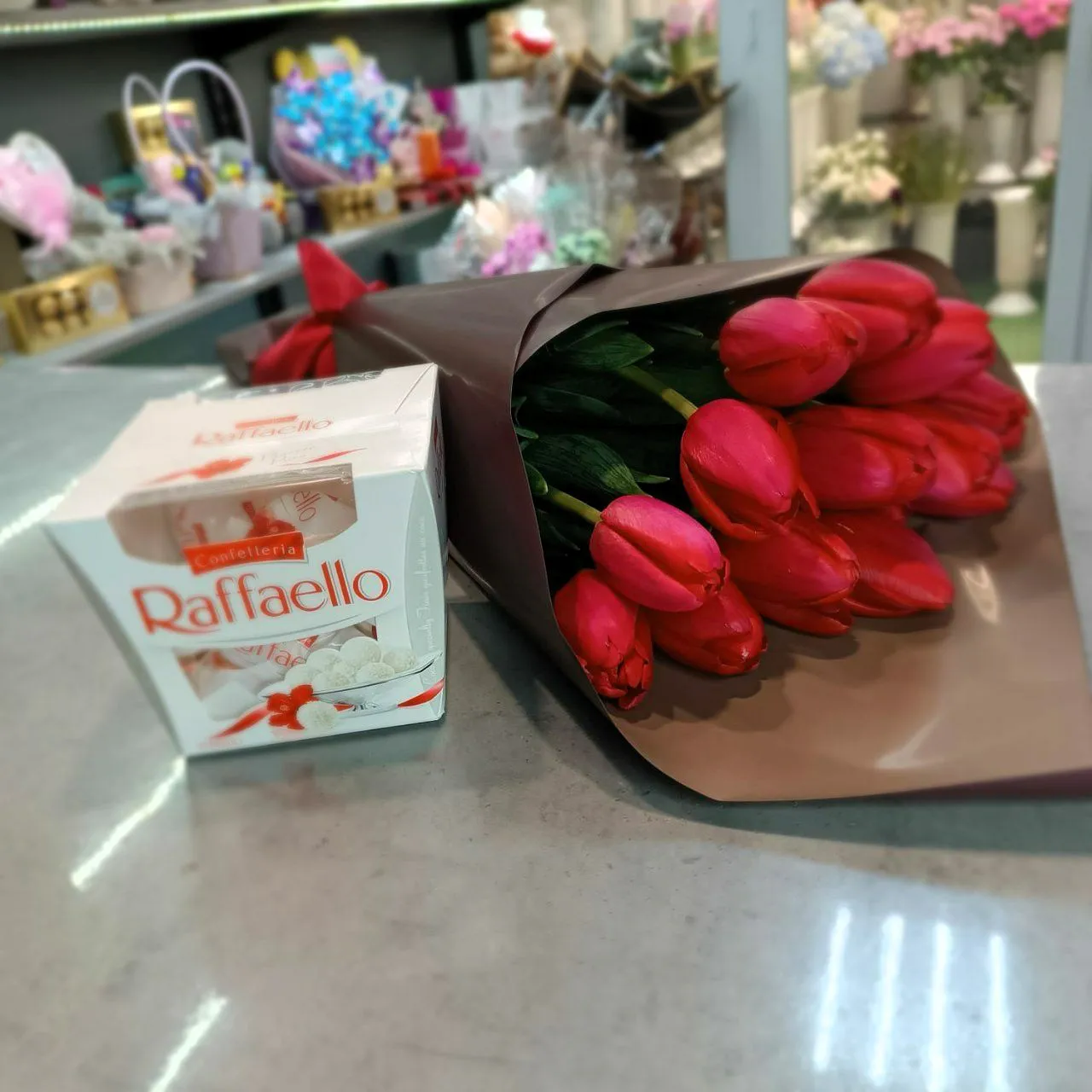 Тюльпаны - 15 шт., упаковка, ленnа + Raffaello