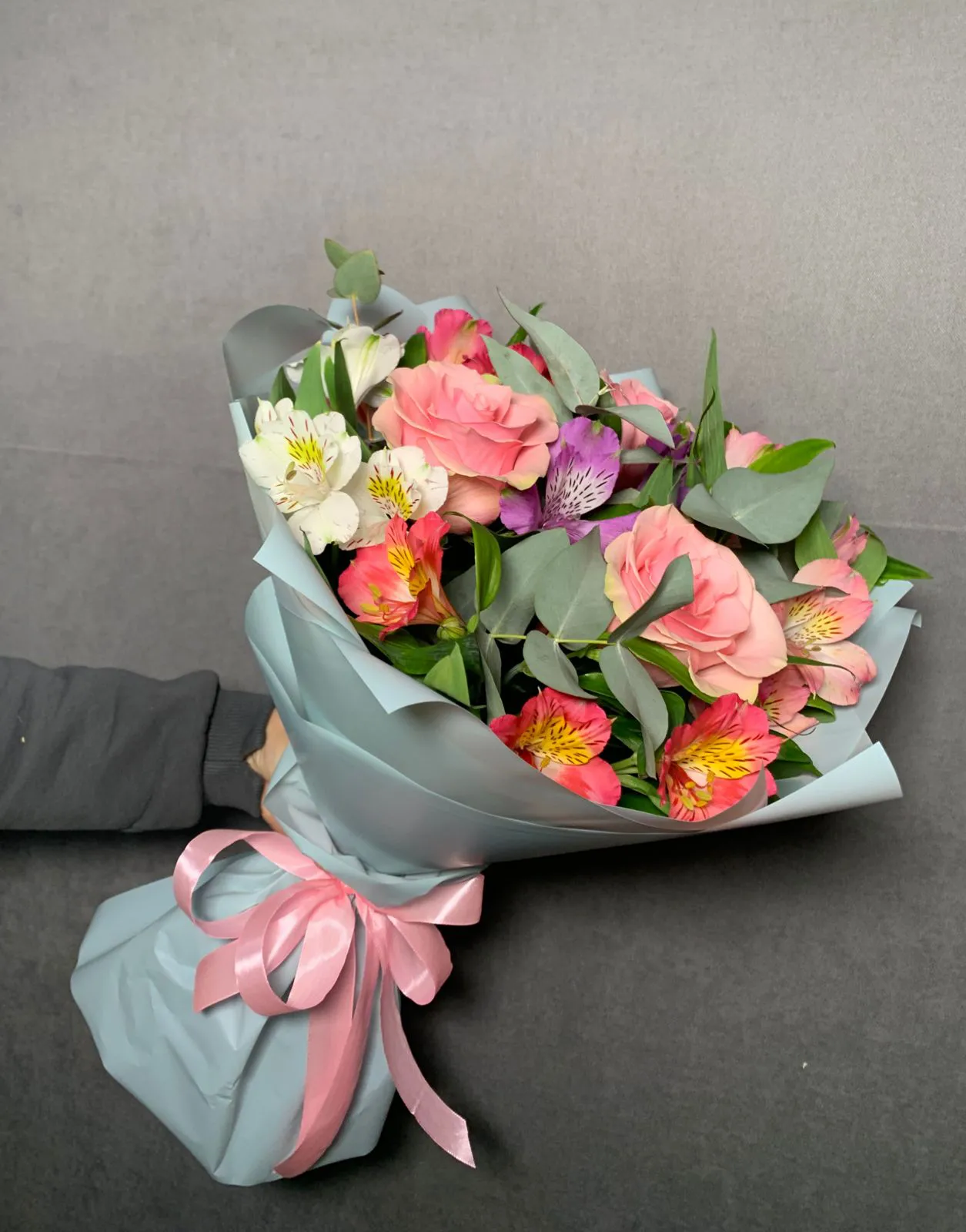 Букет из розовых роз и альстромерий Нежная любовь