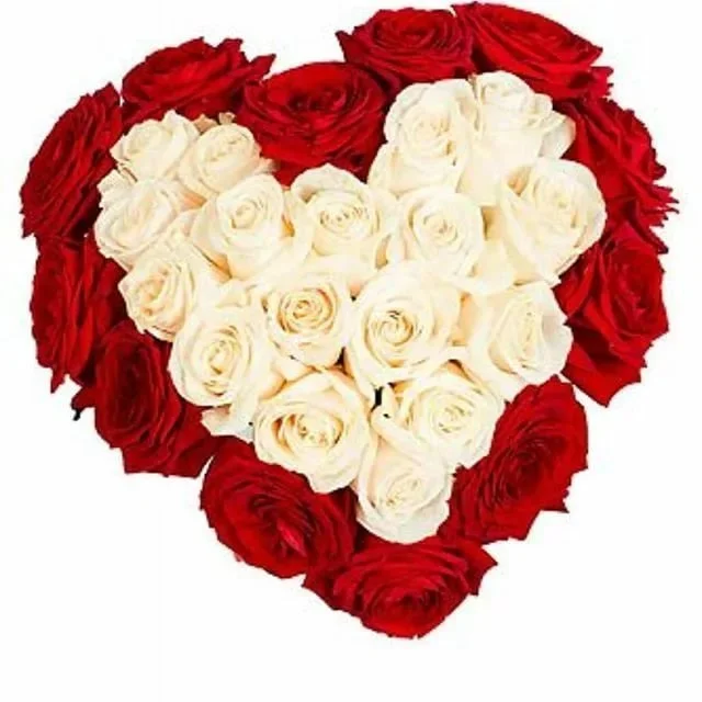 Букет из красных и белых роз Сердце