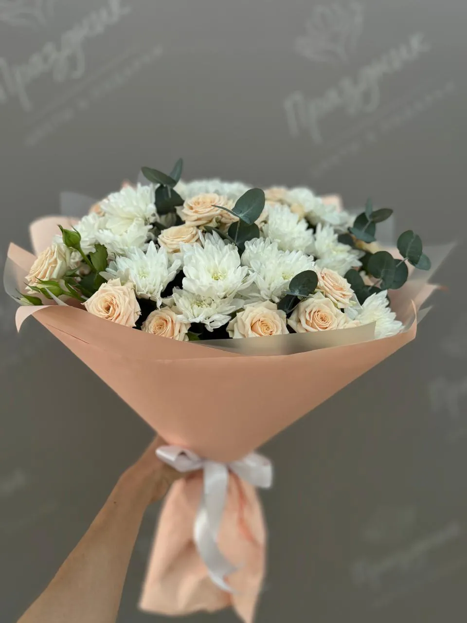 Букет из кустовых роз и хризантем — это прекрасное сочетание, которое приносит в любой интерьер или событие атмосферу радости и уюта. Кустовые розы славятся своей изящностью и нежностью, а хризантемы добавляют яркие акценты и разнообразие текстур. Такой букет станет отличным подарком на любой праздник или просто для поднятия настроения!
