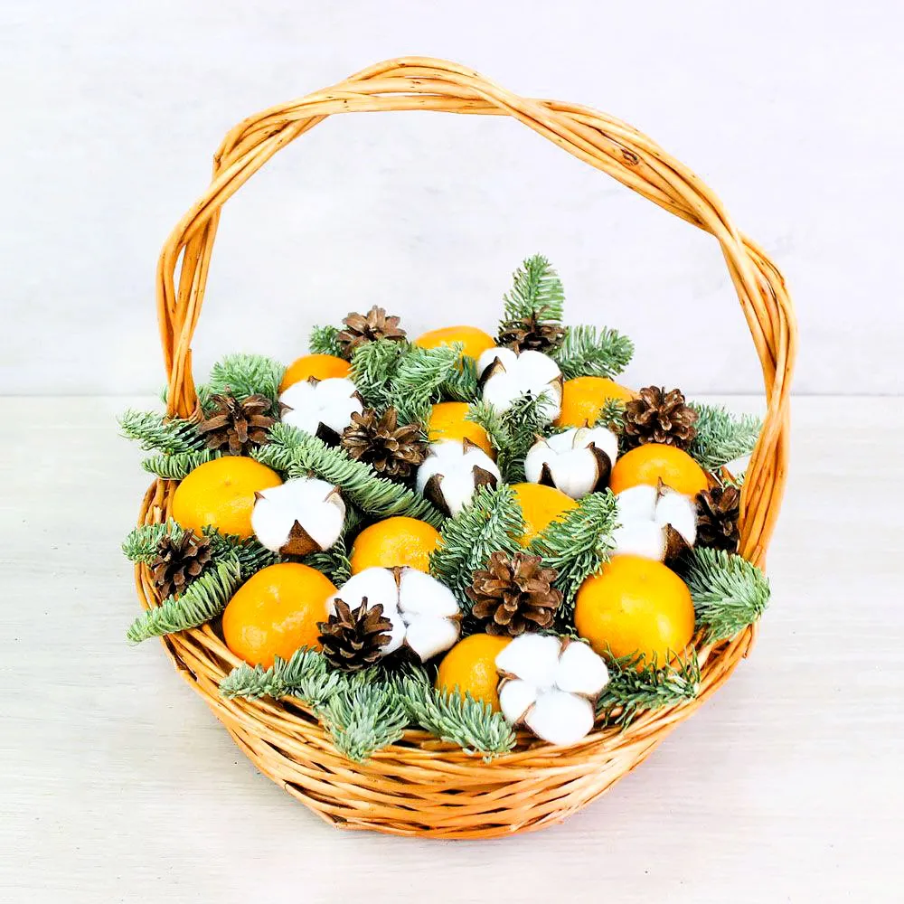 Корзина с мандаринами и хвоей Цитрусовая радость
