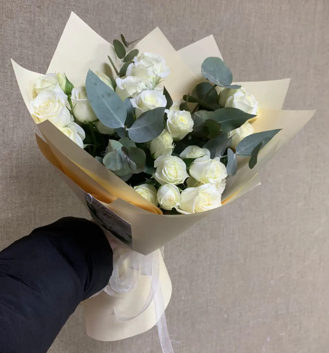 Букет из кустовых роз и эвкалипта Внезапный сюрприз